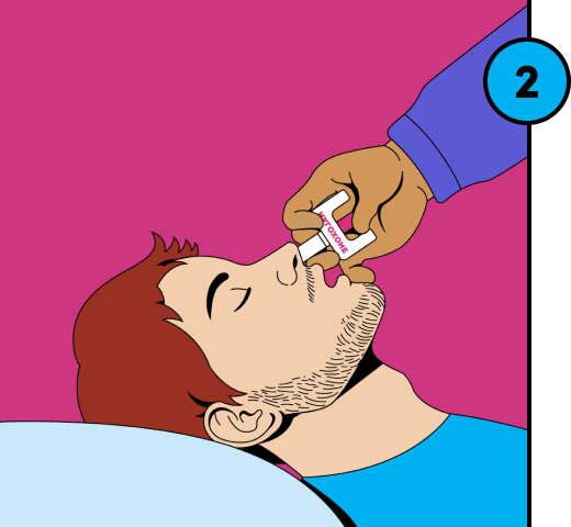 - If they continue to struggle breathing, wait 2–3 minutes and give them another dose in the other nostril